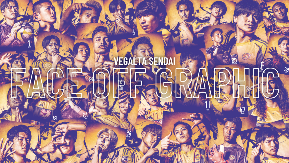 ベガルタ仙台では新しい生活、スタートを切る4月、新年度の始まりに際し、自分と向き合い、自身を信じる気持ちやモチベーションを高め、目の前の自分を超えていくことをコンセプトにした「FACE OFF GRAPHIC」の期間限定での掲出、ブロマイドの販売を行います。
